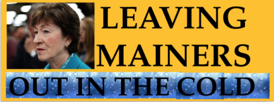 Since there already have been a few cold-hands-and-feet Federal Building vigils this month, I invite folks to consider one more which could strike a politically resonant note. As much as anything might be, having Mainers out in the cold with a "Leaving Mainers Out in the Cold" banner could be an effective message. Like this 3’ x 9’ banner for the occasion.